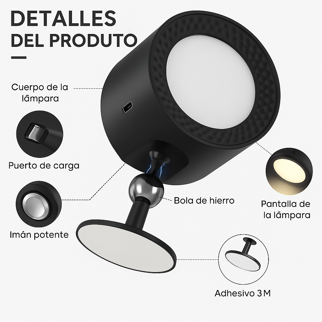 La Lámpara de Pared Sin Cables transforma cualquier espacio con su diseño elegante, iluminación regulable y tecnología inalámbrica. Instálala fácilmente y disfruta de una luz ajustable de tres niveles y temperaturas para crear el ambiente ideal en cada momento.