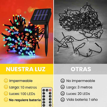 CORTINA DE LUCES DE NAVIDAD CON PANEL SOLAR Y CONTROL REMOTO (10 METROS)