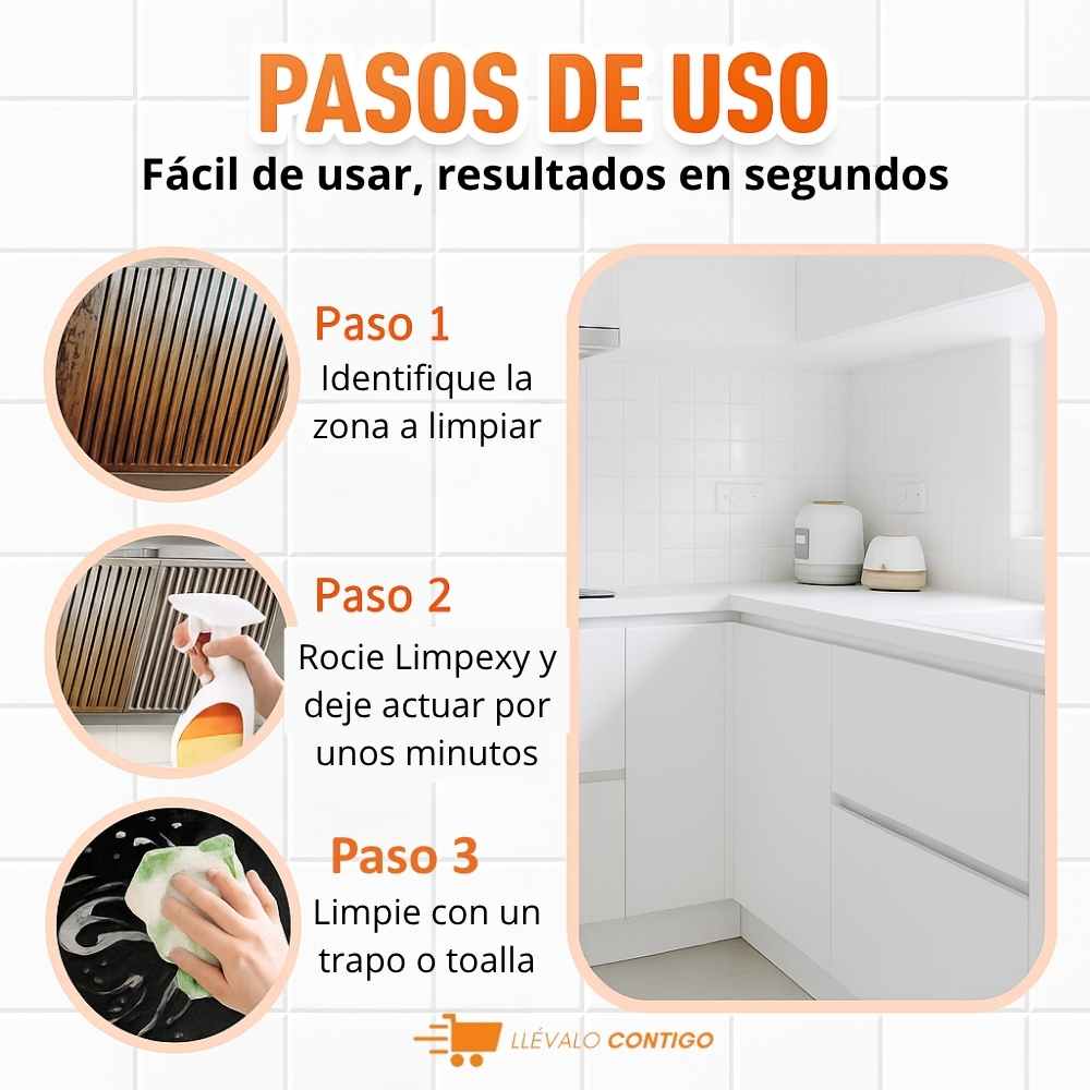 👉 Con Limpexy elimina la suciedad en segundos sin restregar, ni químicos agresivos. Limpia cocina, baño, paredes, electrodomésticos y más con un solo producto